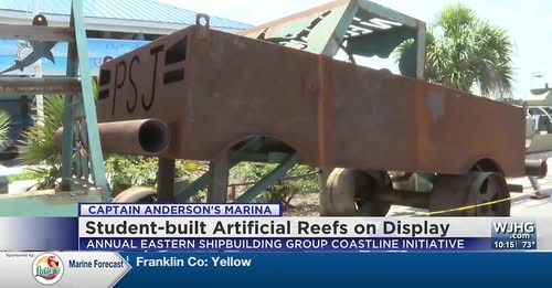 The Eastern Shipbuilding Group created a school competition between students in welding technical programs across Bay and Gulf Counties. This program allows students to design and build their own artificial reef with donated material from Eastern. All reefs must meet Army Corps of Engineer criteria before they are deployed. This teaches the students valuable problem-solving skills and gives them real world experience in building artificial reefs! These reefs are then deployed in state and federal waters to gather fish on the Gulf floor! Check out our most recent deployment!